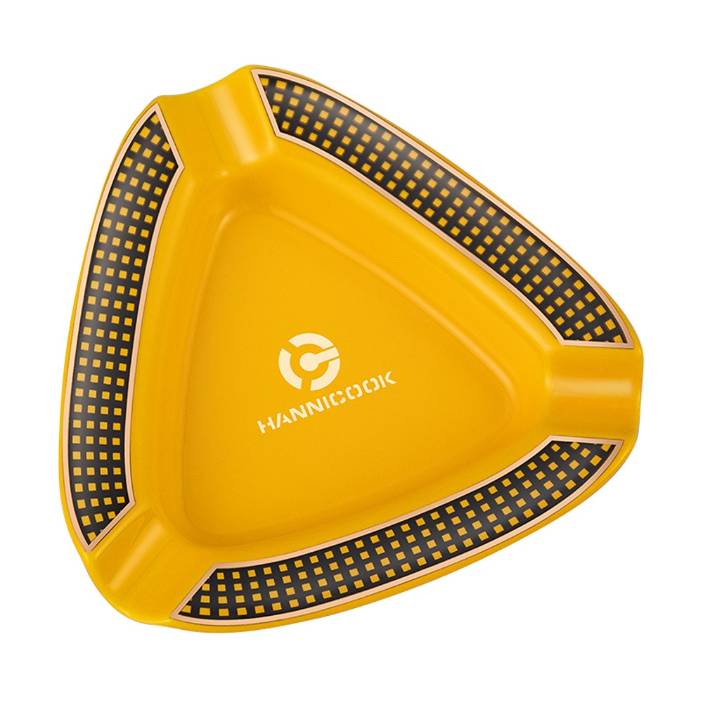 Hannicook keramička pepeljara za 3 cigare u žutoj boji. Kvalitetna izrada, tri ulegnuća, dimenzije 165×165×35 mm. Idealna za dom, terasu ili kancelariju.