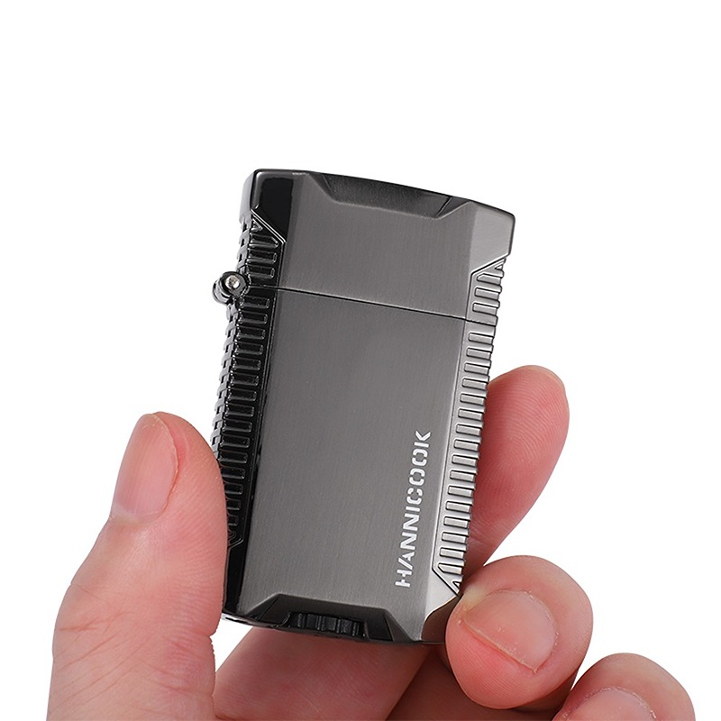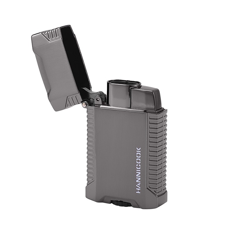 Hannicook Metalni Upaljač sa Dvostrukim Jet Plamenom – Elegantno Sivo Izdanje