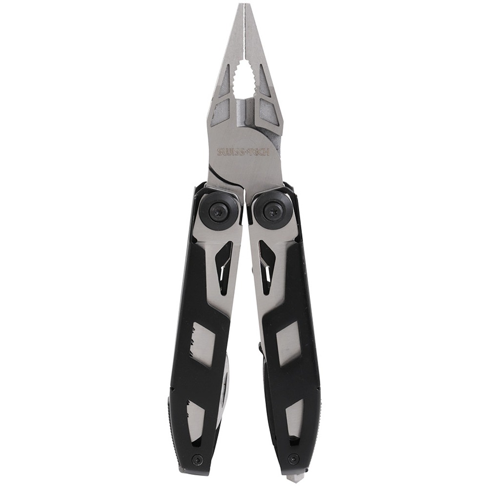 🛠️ Budite spremni za svaku situaciju sa ovim vrhunskim Swiss Tech 23-u-1 multifunkcionalnim kleštima. Izrađena od visokokvalitetnog nerđajućeg čelika sa elegantnom crnom stonewash drškom, ova klešta su dizajnirana da traju.