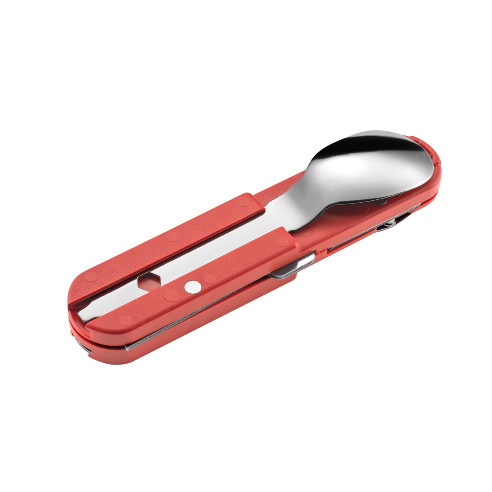 TB Bivouac džepni nož sa kašikom, viljuškom i futrolom u crvenoj boji praktično je rešenje za kampovanje, planinarenje, izlete i boravak u prirodi. Ovaj višenamenski nož kombinuje funkcionalnost pribora za jelo i pouzdane alate u kompaktnom formatu koji lako nosite sa sobom.