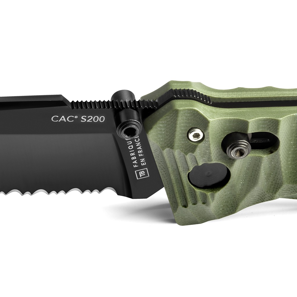 TB francuski vojni džepni nož CAC S200 PA6 army zeleni je robustan i pouzdan nož razvijen za zahtevnu upotrebu na terenu. Reč je o modelu koji koristi francuska vojska, dizajniranom da pruži sigurnost, funkcionalnost i dugotrajnost u različitim uslovima.